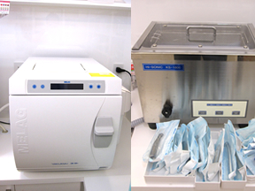 歯科で最高ランクといわれる滅菌器を使って削る機械はもちろんお口に入る器具は医科の手術レベルに近い消毒をしています。また他の器具もディスポで安心して口に入れられます。
