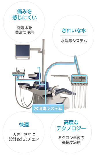 きれいな水で快適、痛みを和らげ精度の高い治療を行っています。