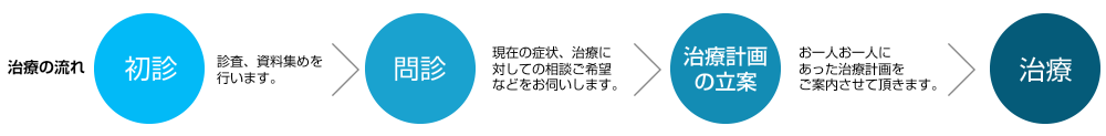まずは患者様の症状を検診によって見極め、保険適用の治療だけでなく幅広い治療方法の中から最適と思われる方法を、わかりやすくご説明・ご提案させていただきます。その上でご要望や気になる点などを詳しく伺い、対話をしながら治療方針を決定していきます。